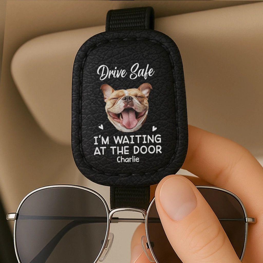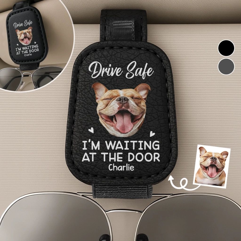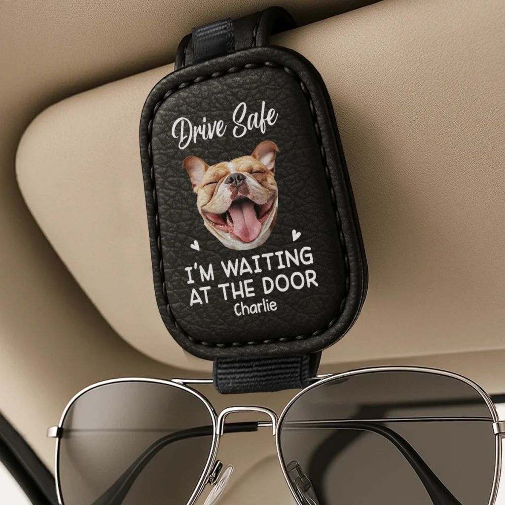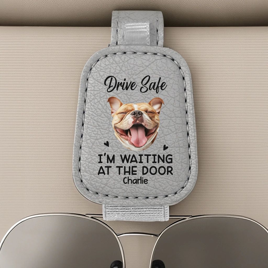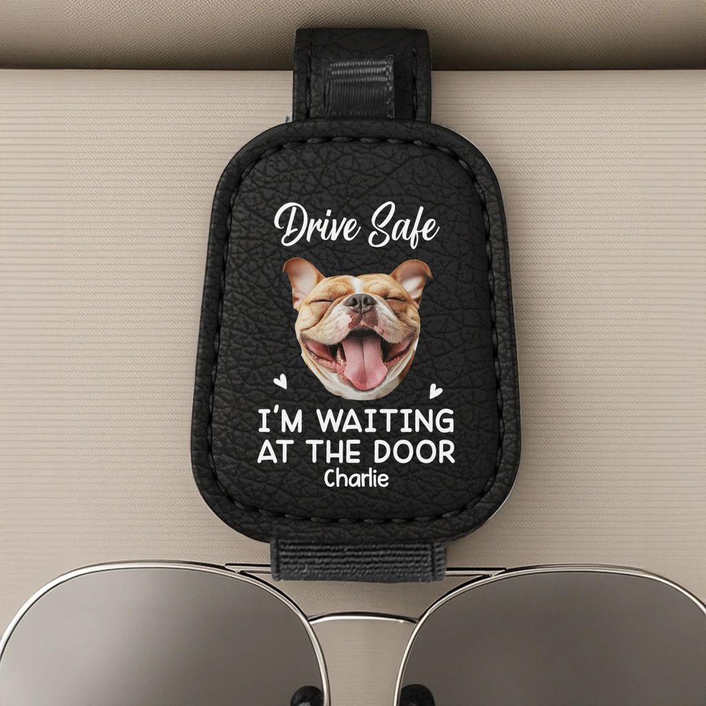 Custom Photo We're Waiting At The Door - Dog & Cat Personalized Custom Leather Car Visor - Father's Day, Gift For Pet Owners, Pet Lovers