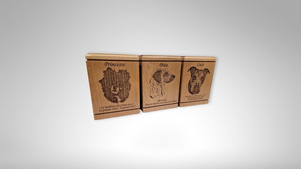 Upload Photo & Text: Please directly upload your favorite photo of your pet and enter your desired inscription (such as name, dates, or a short message) on this product's customization page. We will optimize the photo background and composition to ensure the best possible presentation on the wood.