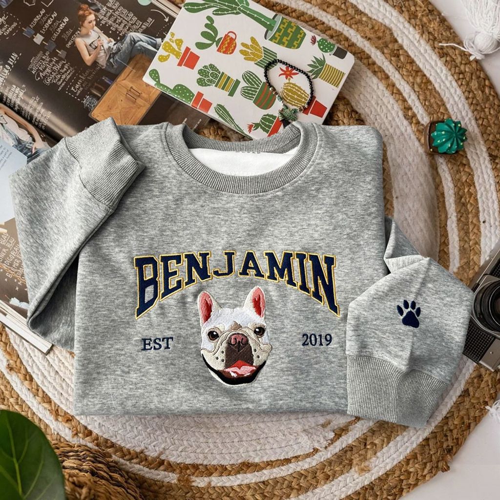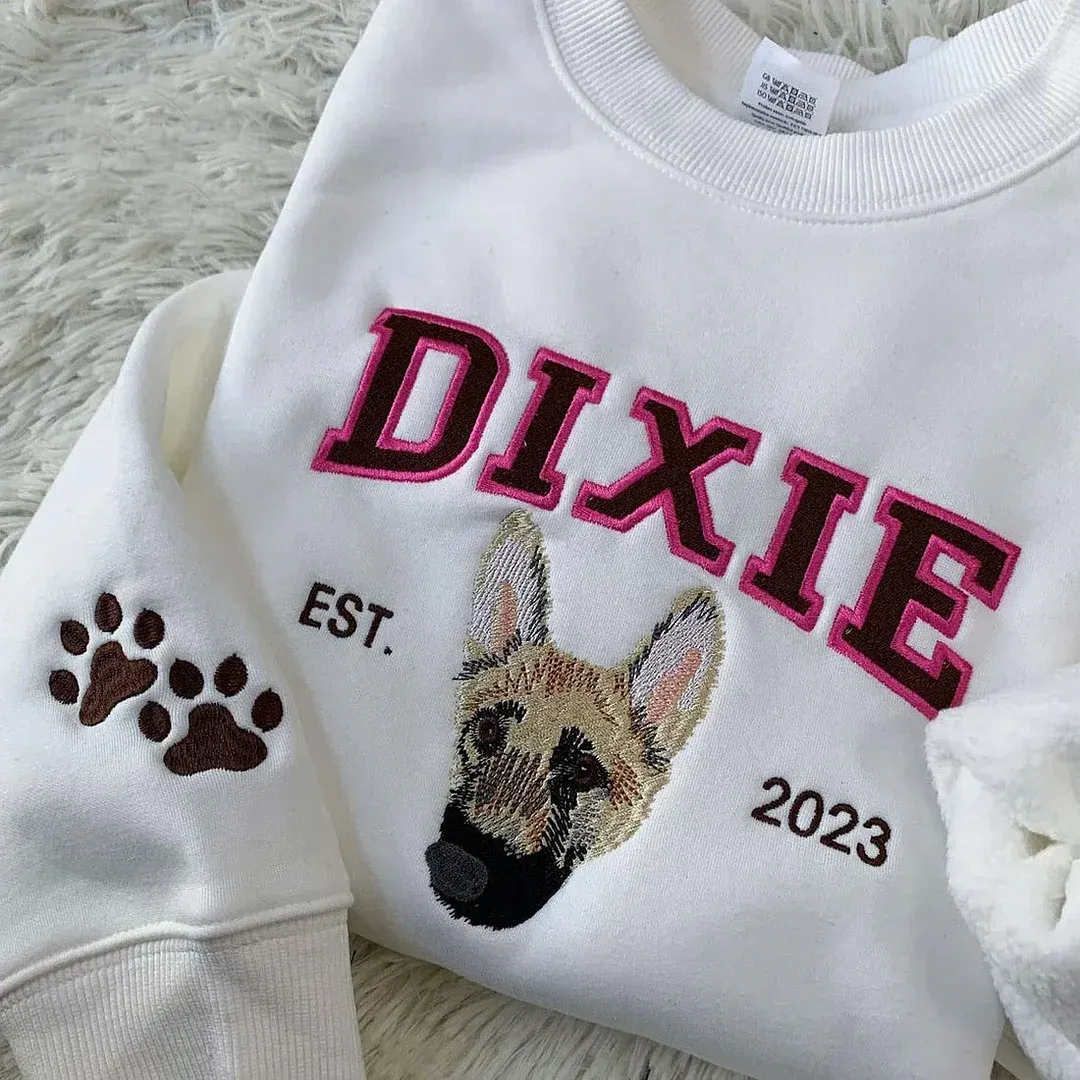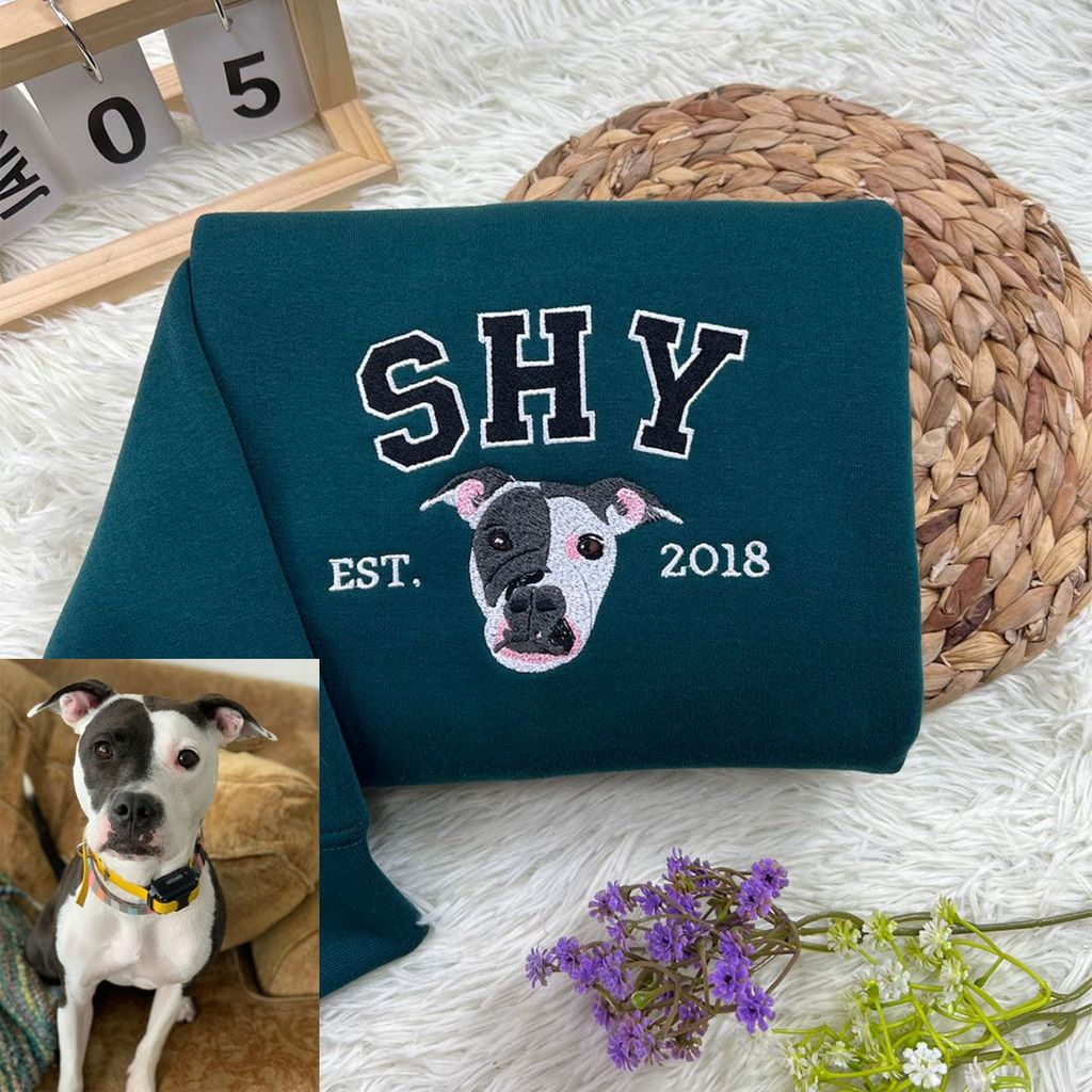 🐾Custom Embroidered Pet From Your Photo Sweatshirt, Personalized Pet Sweatshirt, Pet Name Sweatshirt,Pet Mom Gift, Gift for Pet Lovers.