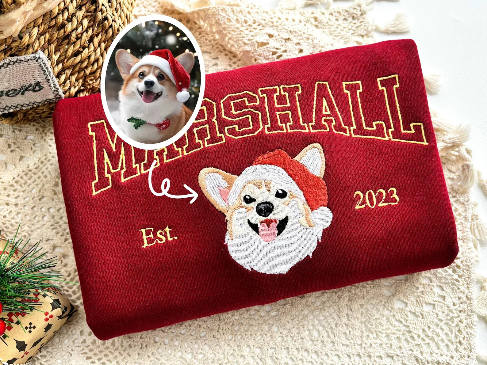 Christmas Pet Portrait Sweatshirt - Personalized Embroidered Hoodie Gift
