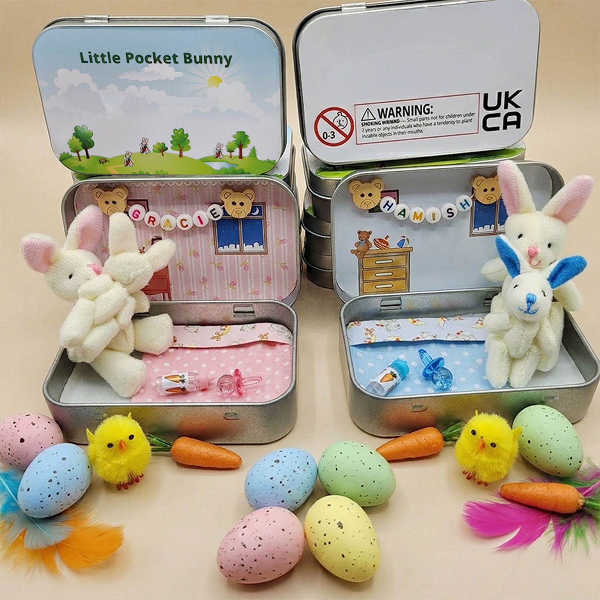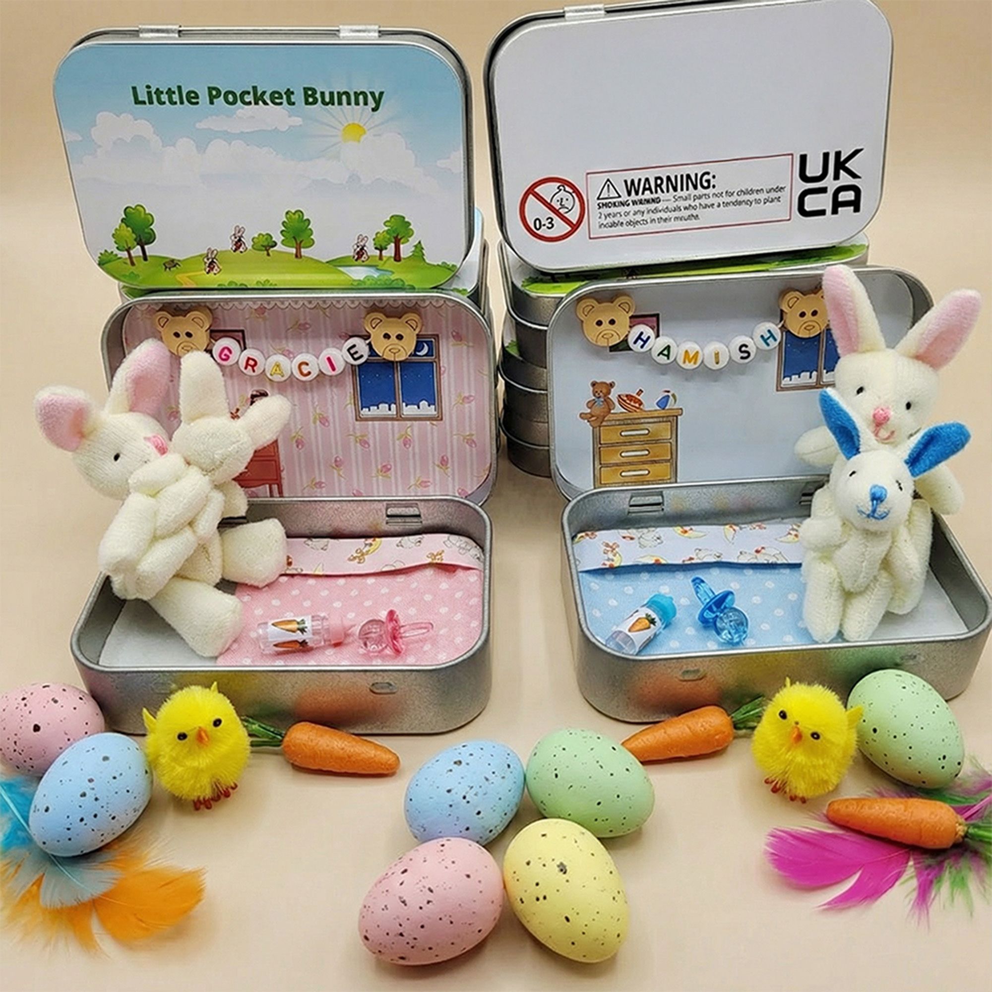 Custom Mother & Baby Rabbit Mini Tin – Perfect Easter Gift