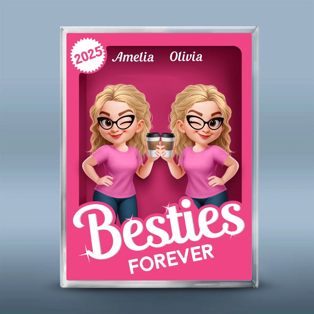 Crafted from durable clear acrylic, this plaque features vibrant printed artwork and a playful action-figure twist. Personalize it with your names and a heartfelt message to turn it into a meaningful keepsake. No frame needed – it stands sturdily on any desk, shelf, or dresser.