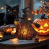 Halloween Witch Lantern Figurine – Spooky Decor with LED Light and Broomstick