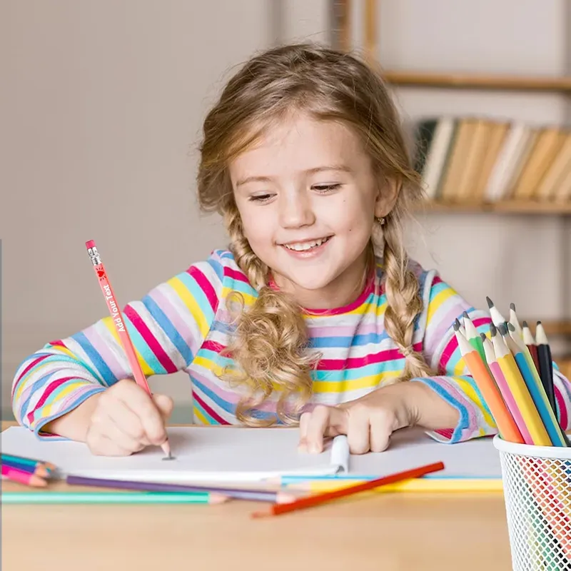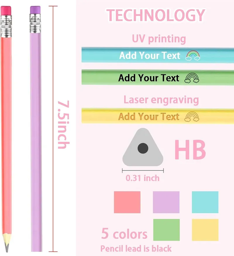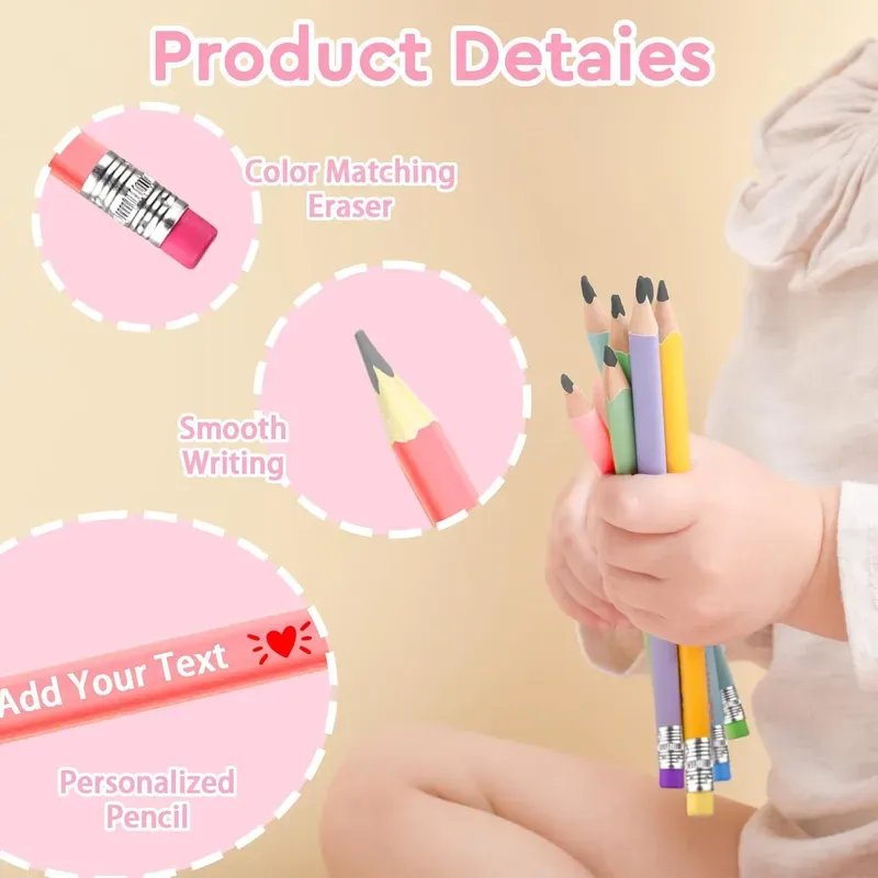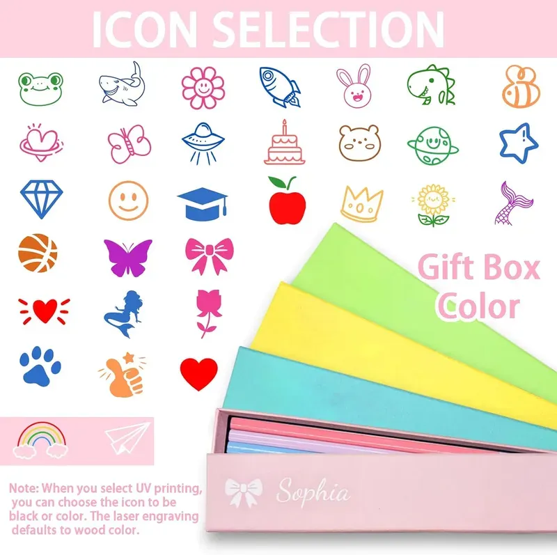 Personalized Pastel Pencil Set – Custom Text Gift Box with Cute Icons