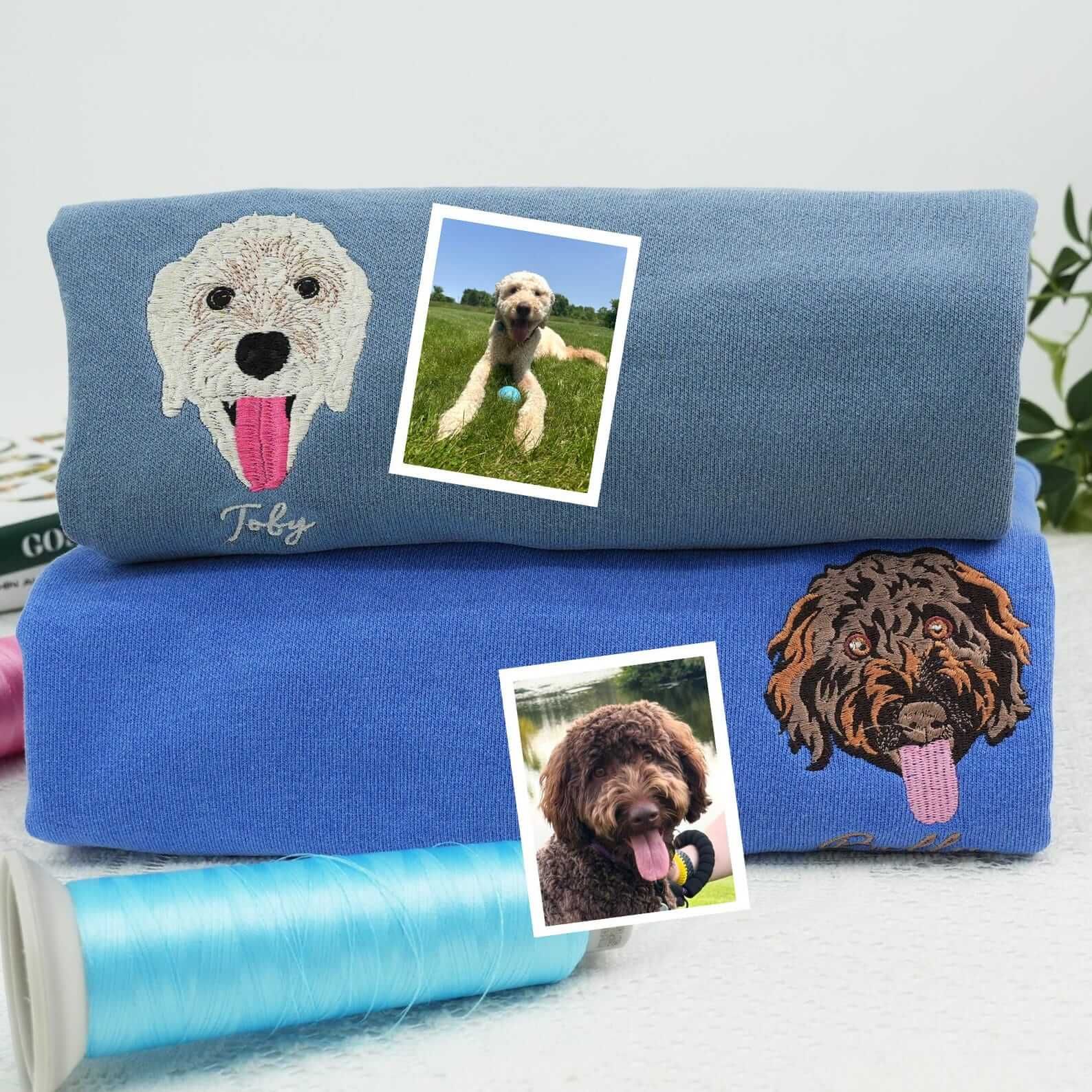 Multi-Pet Embroidered Portrait Sweatshirt - Custom Dog, Cat, Horse with Name