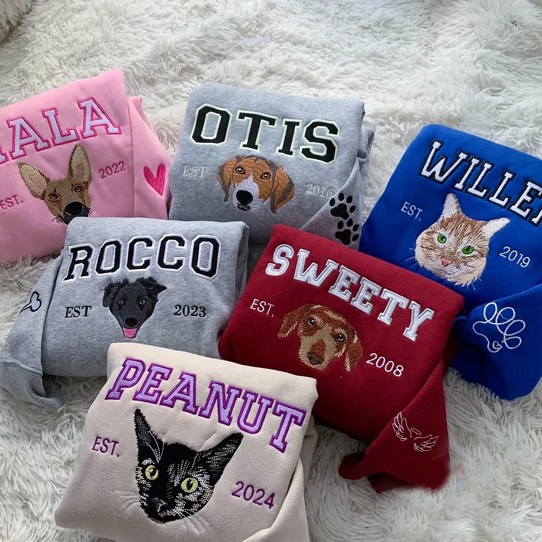 Pet Portrait Embroidered Sweatshirt - Custom Personalized Hoodie