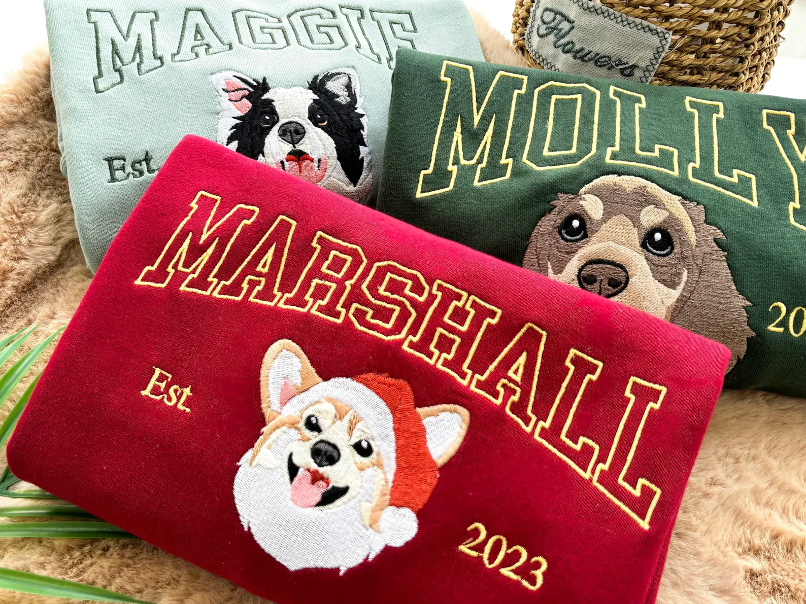 Christmas Pet Portrait Sweatshirt - Personalized Embroidered Hoodie Gift