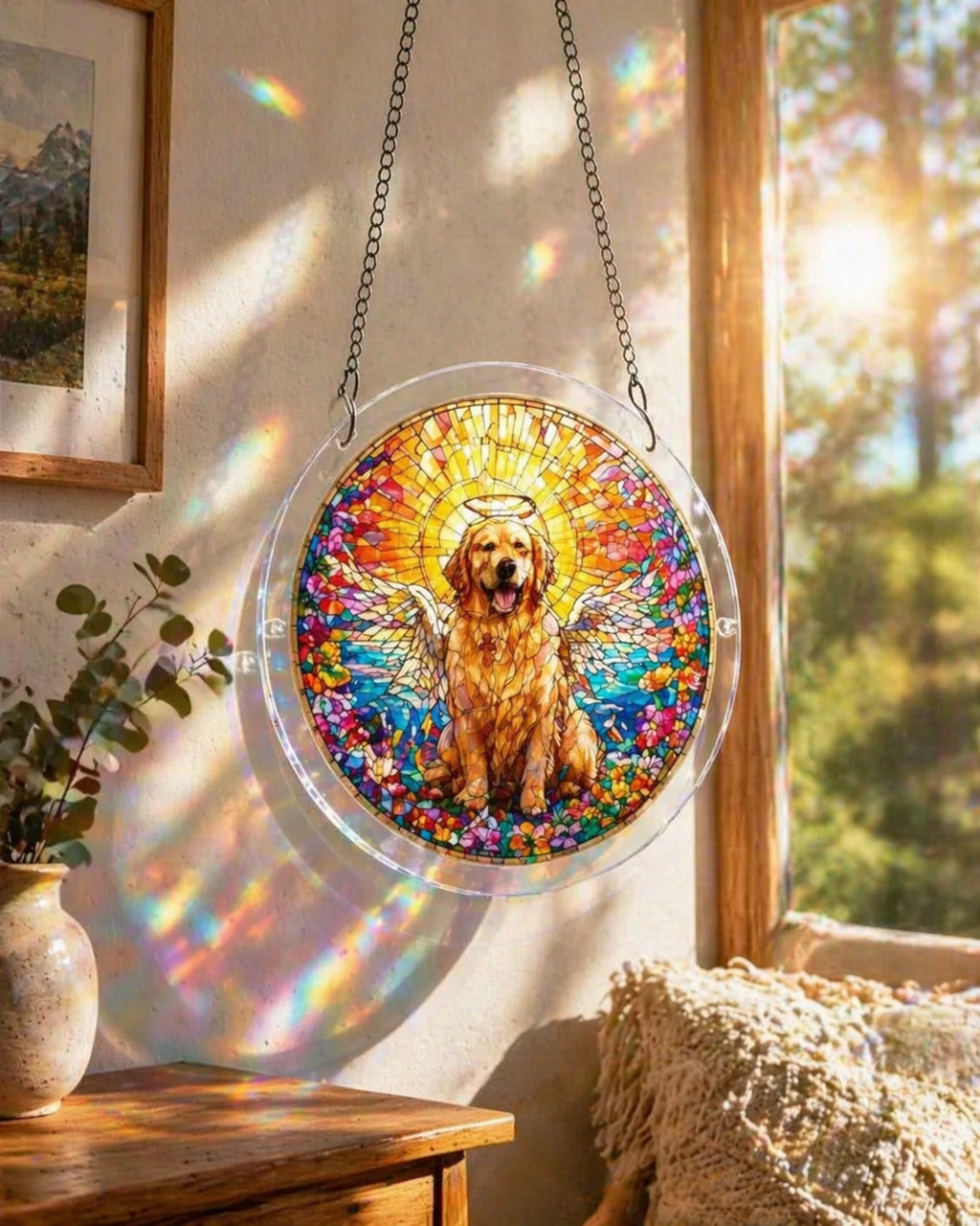 Crafted with high-quality acrylic, it creates stunning rainbow reflections that fill your space with warmth, comfort, and gentle reminders of the love you’ll always carry.