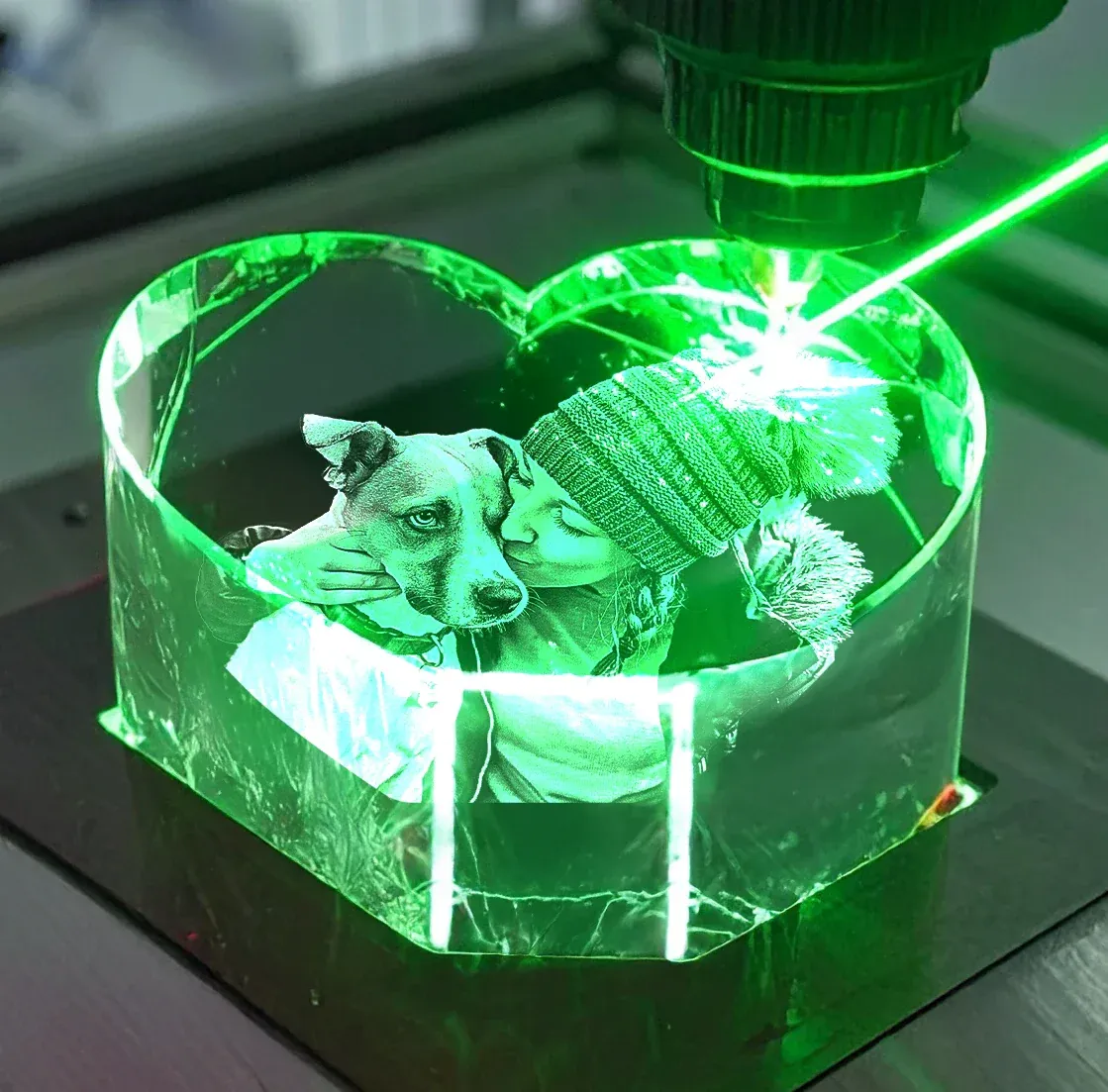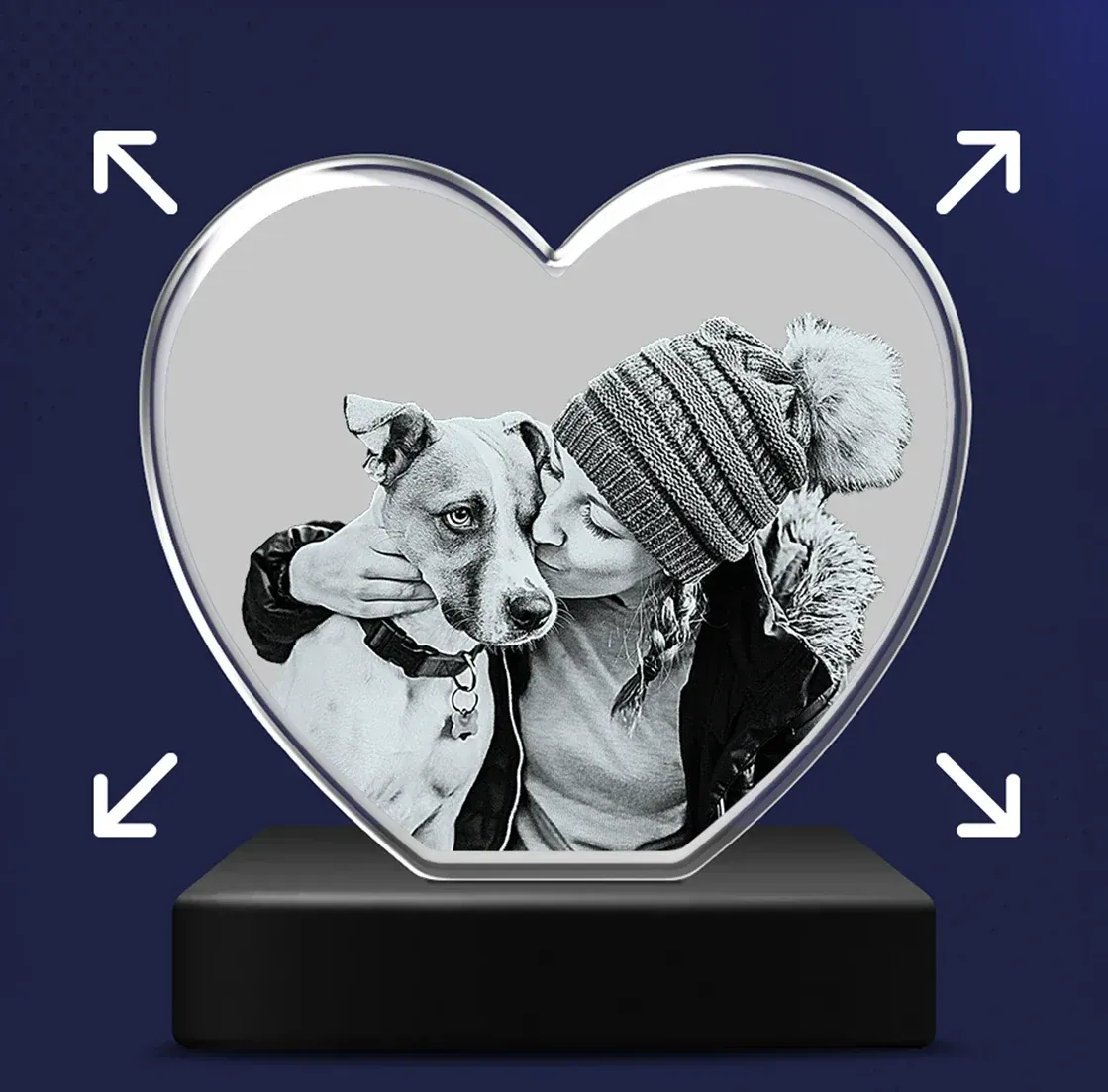 Personalized Heart-Shaped 3D Crystal Photo with Light Base