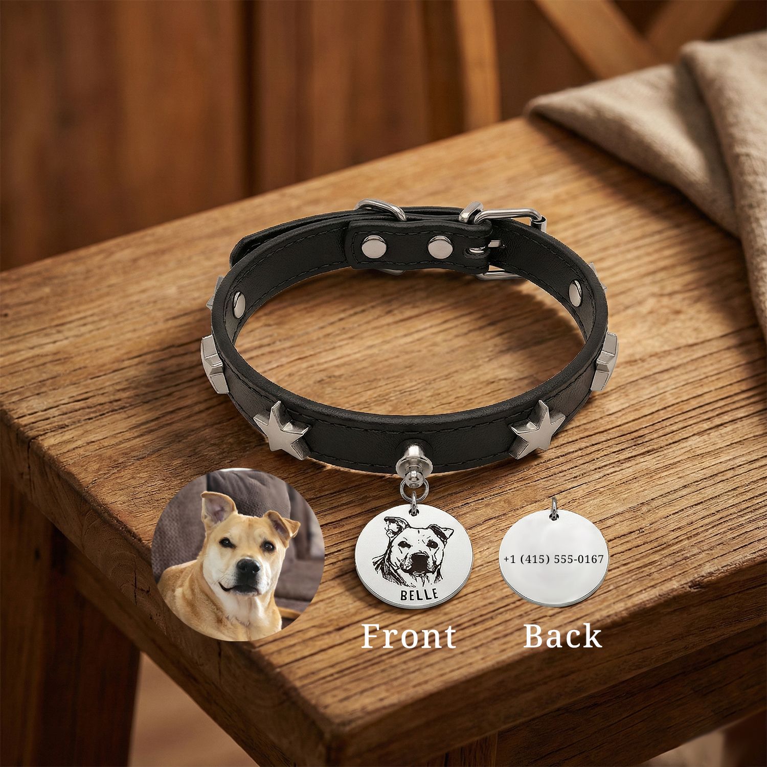 Designed for both style and comfort, this personalized leather dog collar is made to fit securely while allowing your dog to move freely and comfortably.