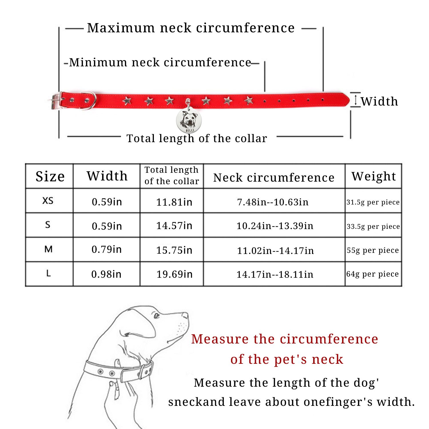 Available in multiple sizes (XS–L), each collar varies in width, total length, and adjustable neck range to suit small to large dogs. The sturdy leather construction provides durability, while the carefully balanced weight ensures it feels secure without being heavy.