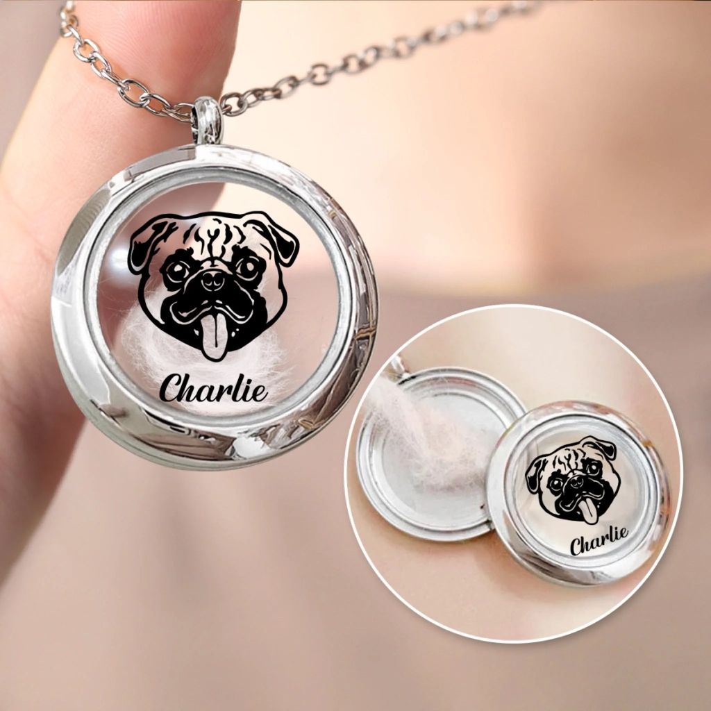 Locket design allows secure storage for fur, hair, or tiny keepsakes