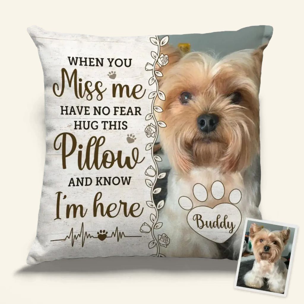 Custom Pet Photo Memorial Pillow – Hug This Pillow And Know Im Here – Personalized Dog Remembrance Gift