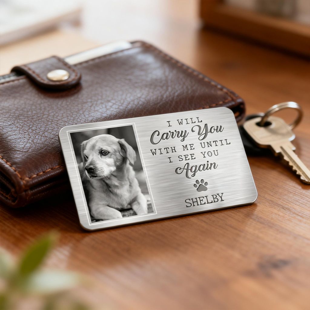Personalized Pet Memorial Wallet Card – I Will Carry You With Me Custom Engraving for Your Beloved Pet
