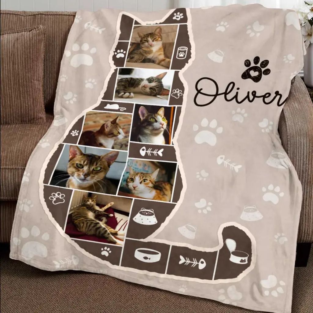 Custom Cat Photo Collage Blanket - Personalized Gift for Cat Lovers