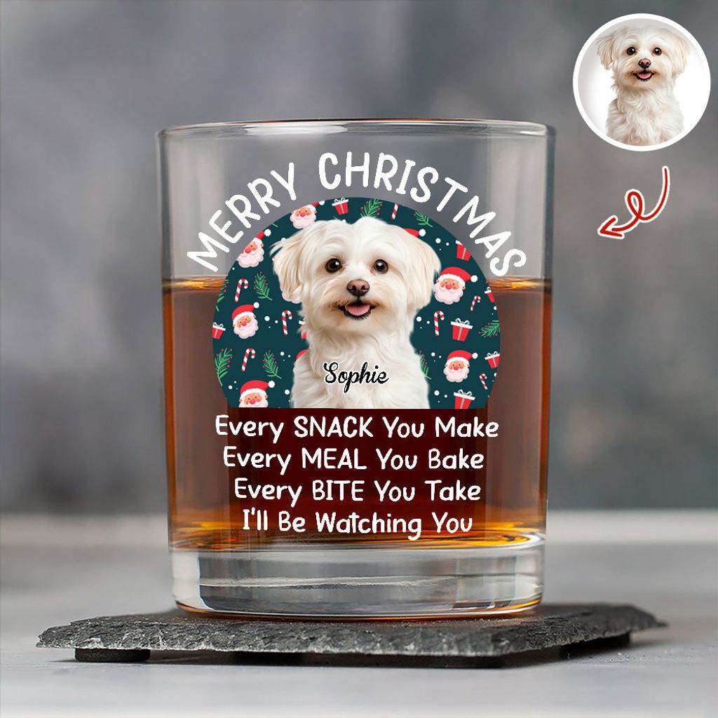 Raise a glass to your furry best friend with this custom Christmas whiskey glass designed for dog lovers. Perfect for holiday gatherings or cozy nights in, this personalized glass transforms your favorite canine photo into a cherished keepsake. The witty "Every Snack You Make" design adds humor and warmth to every sip. Whether you're treating yourself or gifting a fellow dog parent, this custom piece celebrates the special bond you share with your pup. Durable and thoughtfully crafted, it's the ideal way to toast to unconditional companionship.
